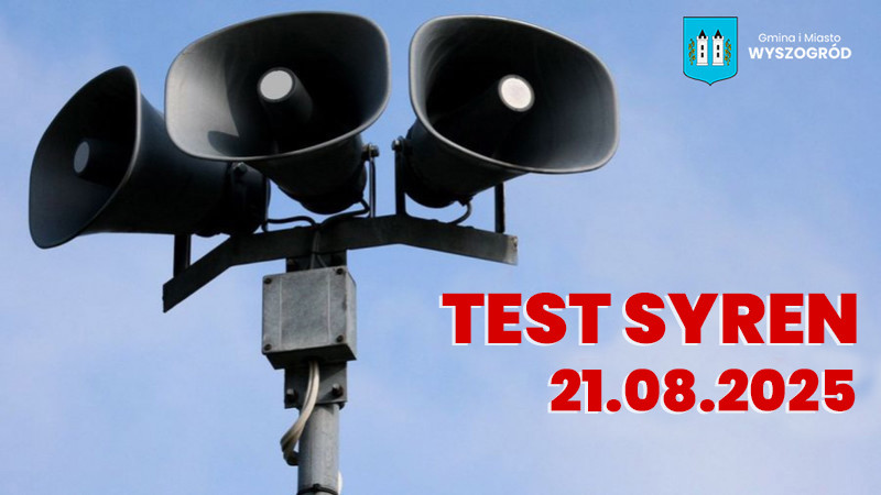 Uprzejmie informujemy, że we współpracy z Mazowieckim Urzędem Wojewódzkim w Warszawie w dniu 21 sierpnia 2025 r. w godz. 8.00- 16.00 na terenie powiatu płockiego (gmina Wyszogród) przeprowadzone zostaną testowe uruchomienia syren alarmowych.