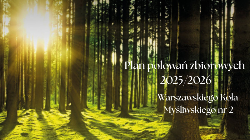 podaje do publicznej wiadomości plan polowań zbiorowych Warszawskiego Koła Myśliwskiego nr 2 w roku łowieckim 2025/2026.