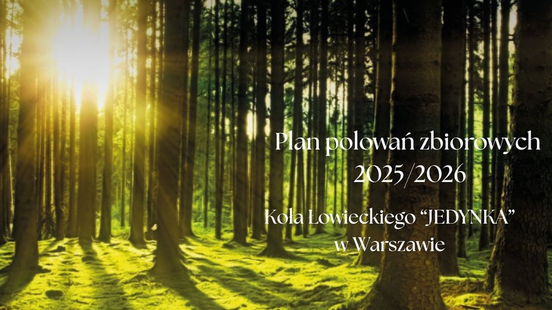 podaje do publicznej wiadomości plan polowań zbiorowych Koła Łowieckiego "JEDYNKA" w sezonie łowieckim 2025/2026.